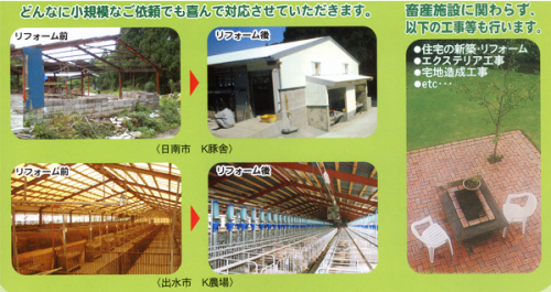 屋根回収・糞尿ピット改造・柵・ゲージの修理入替え・用途変更による内部前面改造
